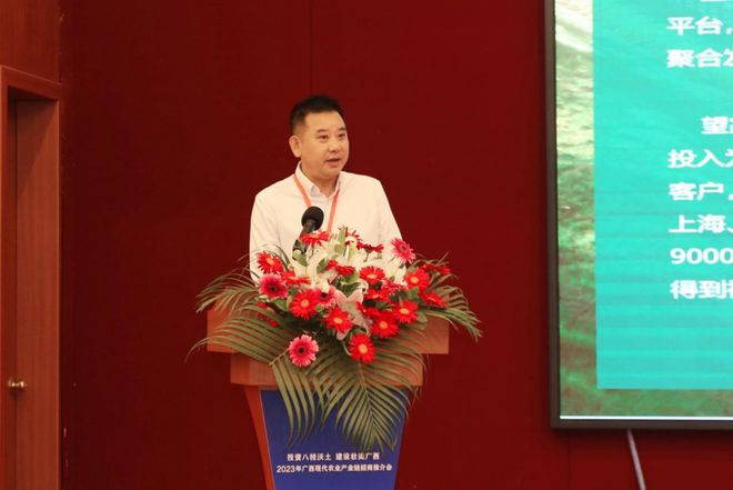 在本届推介会上,集团领导于彪受邀作为企业代表做了主题发言,他介绍,望家欢每年销售广西农产品的产值已超1亿元,今年产值预计将超1.5亿元。于总表示,望家欢将继续响应各级号召,以更加饱满的热情投身到产业帮扶中去,积极践行社会责任,促进农业高质量发展,助推乡村振兴事业。
