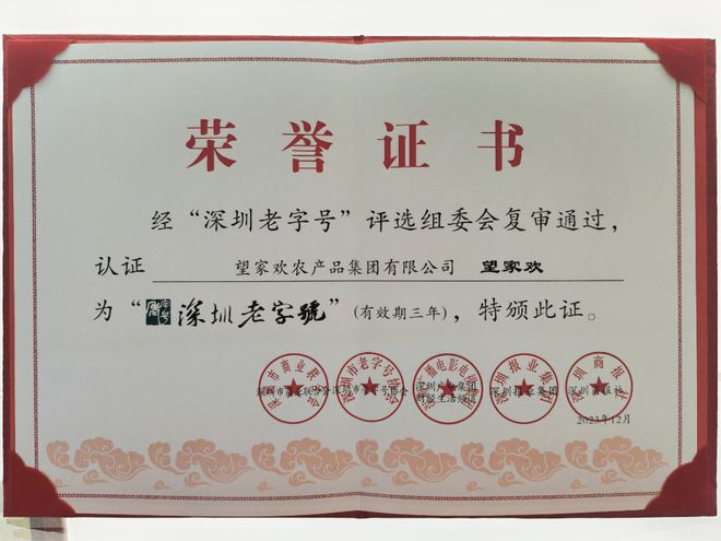 望家欢作为第五届“深圳老字号”企业,按照组委会评选要求和深圳老字号复审相关规定,顺利通过复审,获得2023-2026年度“深圳老字号”称号。
