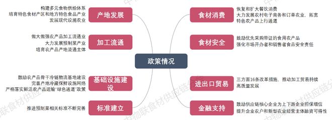 2023年,国家相继出台多项政策促进食材供应链行业发展,政策全面覆盖食材产地发展、加工流通、基础设施建设、标准建立、食材安全、食材消费、进出口贸易、金融支持等多个关键层面,为行业的健康有序发展提供了政策保障。