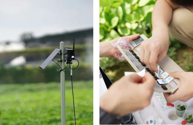物联网设备(左)及田间检测(右)保障食品安全