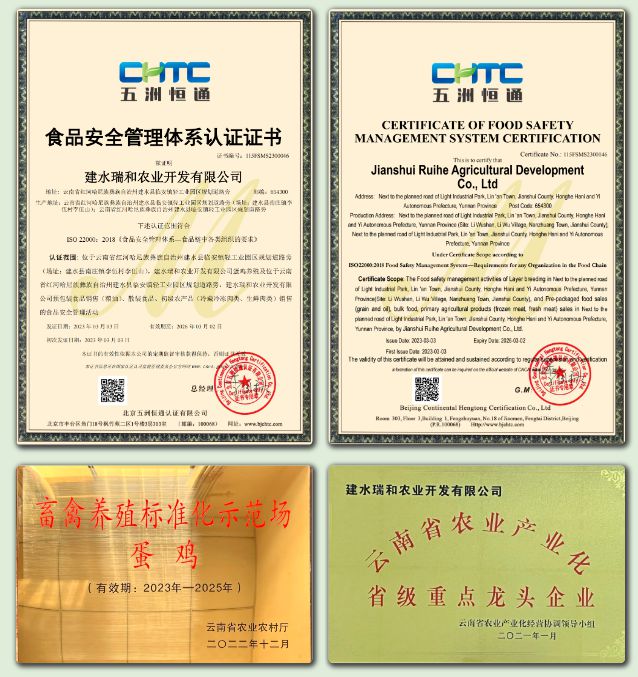 2023年3月,合作企业还投资2亿元,建设了占地180亩、存栏100万羽的建水瑞和现代化蛋鸡场,建成后,总存栏量将提升至260万羽。