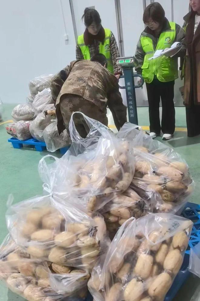 在源头端,莒南公司深入源头产地,针对团餐市场需求,以望家欢的高标准精心挑选土豆、包菜、西红柿等各类农产品,开展基地合作,从源头把控产品品质,通过内循环整合食材开展统采统配。