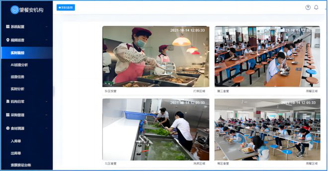 望家欢自主研发的信息化系统,可对食堂环境及食材储藏等实时监控