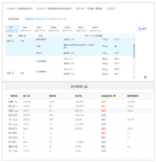 食堂经营者可通过望家欢自主研发的系统定制带量食谱,并一键下单
