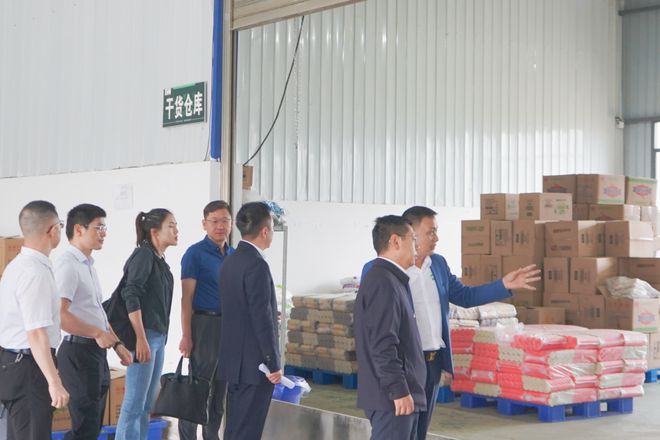捐赠仪式后,团省委领导带队实地探访寻甸县望家欢农产品集团有限公司,察看配送车间、配送流程、设施设备配备等情况,并对企业严把食品安全观,集约化、规范化、标准化运营表示肯定。