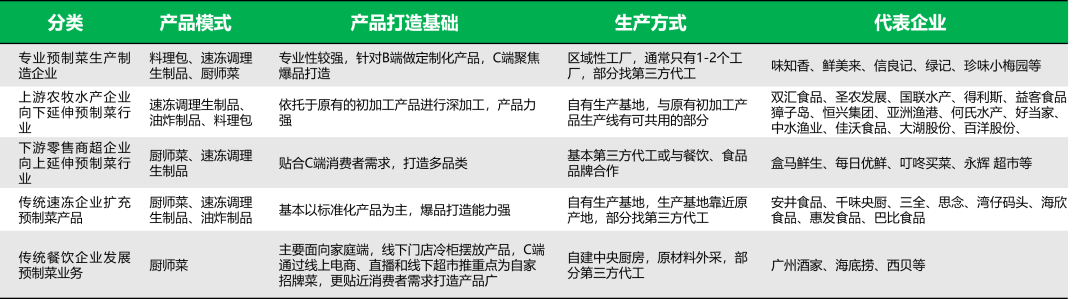 B 端高度集中,大单品型、上游资源型望占尽先机:其一,资源型企业往往有较低的成本;其二,上游资源型企业本身拥有客户资源;其三,上游资源型企业往往具备新预制菜企业不具备的多地生产能力。