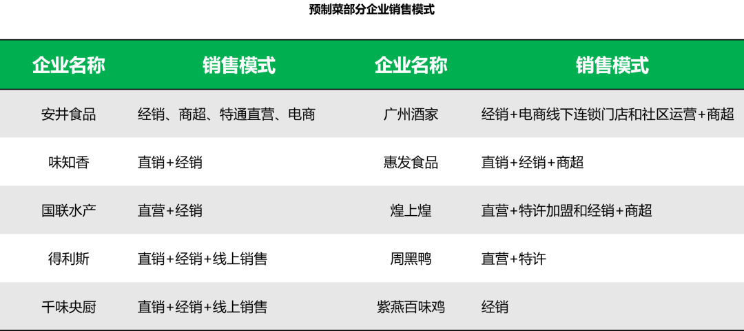 直营+经销模式:通过官网、自建电商平台、线下门店进行销售,此类模式以知名餐饮品牌、预制菜大型玩家为主,如味知香等是专业预制菜选手,以自营、加盟门店等方式拓展渠道。