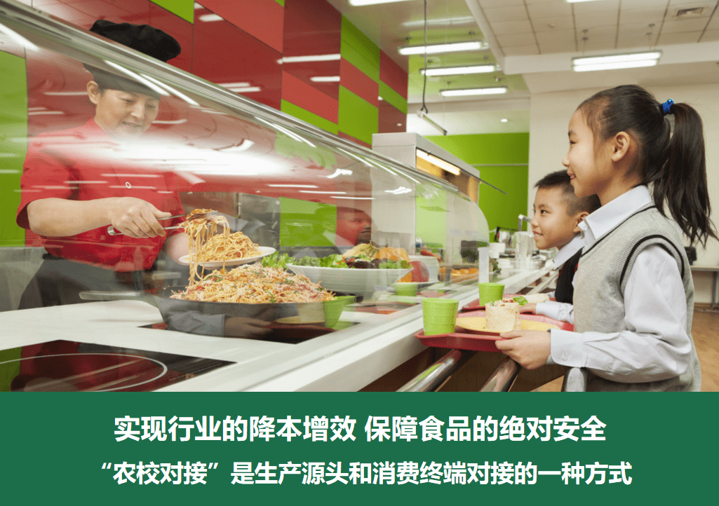 我们再看“农校对接”,其中的“农”主要指农民专业合作社、家庭农场等新型农业生产主体或具备高标准生产能力的种植基地,“农”代表的是“生产源头”;其中的“校”主要指学校食堂(以高校为主),其代表的是“消费终端”。那么,“对接”则指生产源头与消费终端的高效衔接或一体化合作,这恰与《实施办法》有异曲同工之意,都是引导行业从源头开展直供合作,避免低效的中间环节,以达到减少浪费与损耗、降低采购与经营成本、提高供给安全性的最终目的。