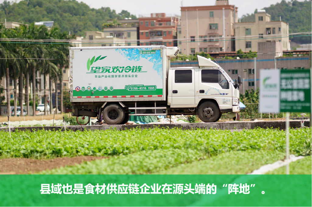 县域也是食材供应链企业在源头端的“阵地”。食材供应链一头连接农产品生产源头的田间地头,一头连接着餐桌消费,作为“农头工尾”“农头食尾”的典型模式,符合农产品向食品化升级、农业供给侧向需求侧升级的趋势。因此,完善县域商业生态是推进城乡融合发展的重要抓手,有利于推动农产品供给与城市餐饮需求深度融合,为食材供应链产业创造更理想的发展环境。